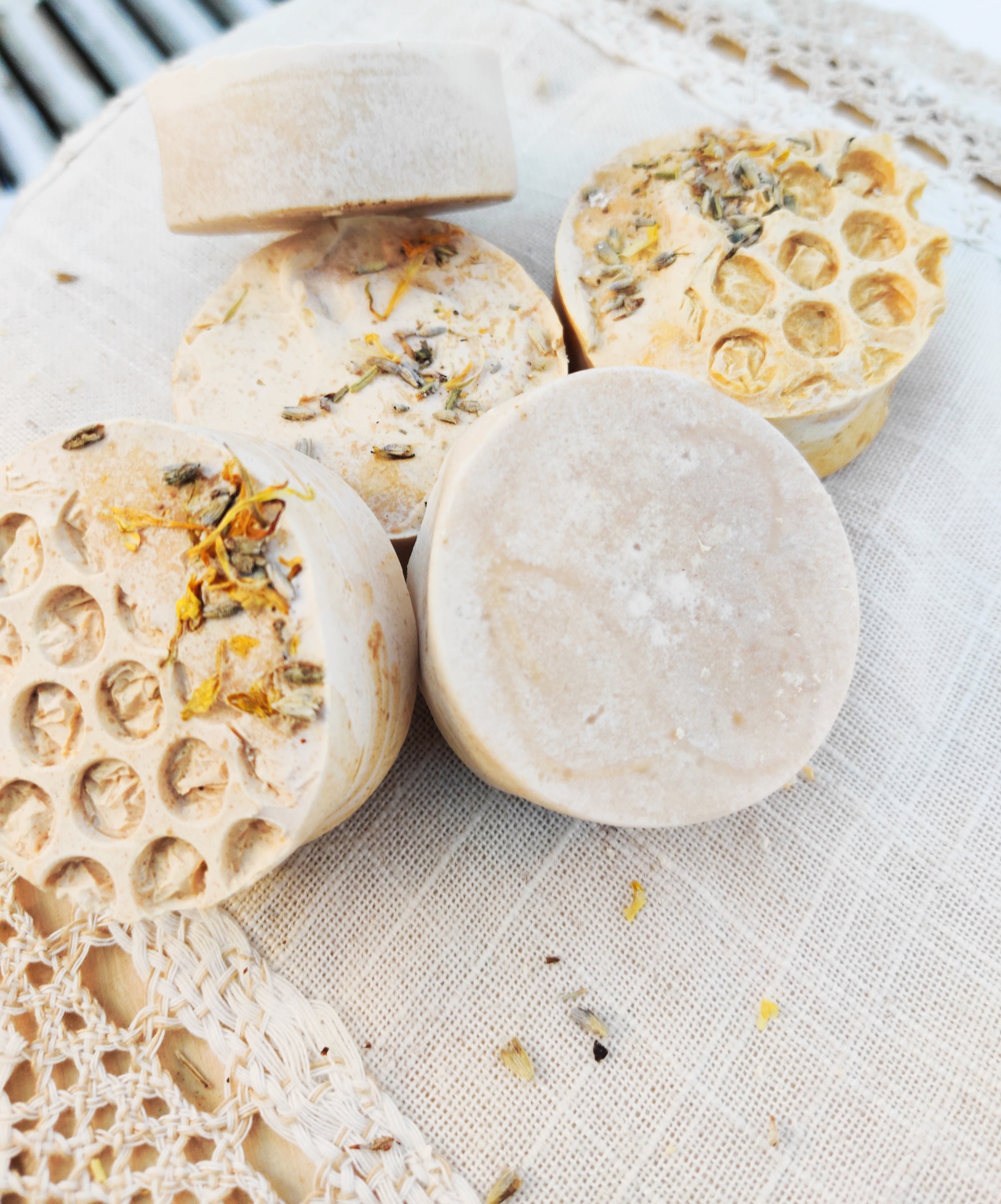 Soaps made using seawater or a brine originated in Germany and are known as soleseife (sole = brine, seife = soap). Soleseife bars are not the same as salt bars. To make salt bars, salt is incorporated into the soap batter near the end of the process and just before it is poured into a mold which can sometimes leave a scratchy texture in the finished soap. To make soleseife the salt is first dissolved in water making the bar smooth and creamy, rather than coarse the salt crystals